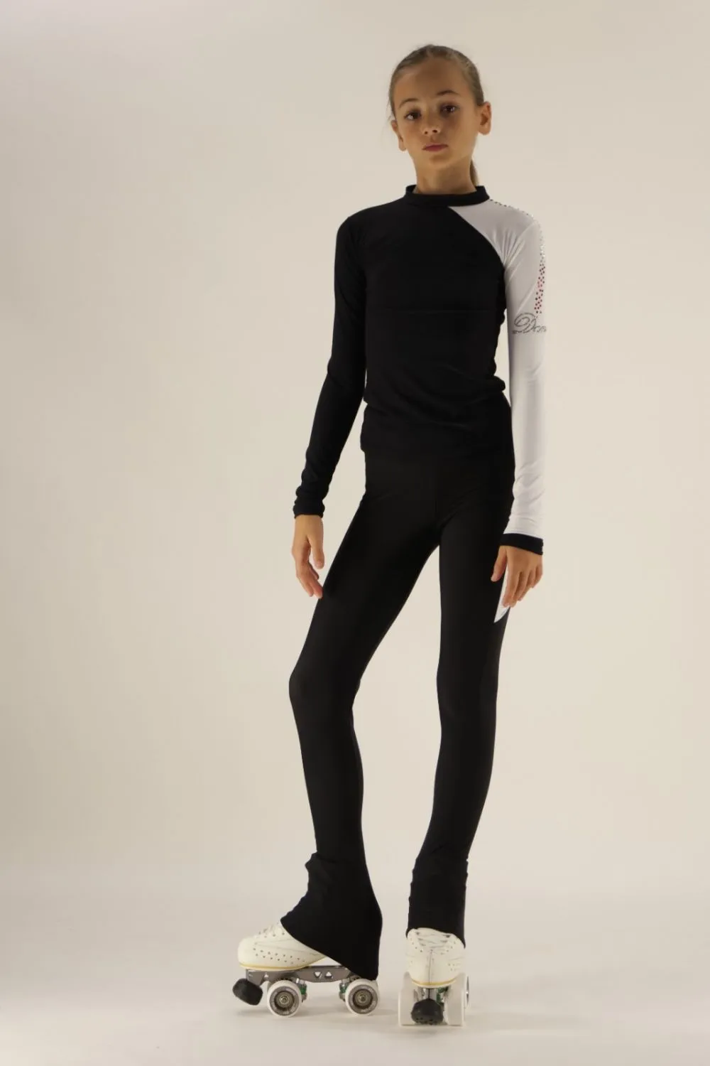 Pantalone a zampa che permette di coprire buona parte del pattino fino al tacco.