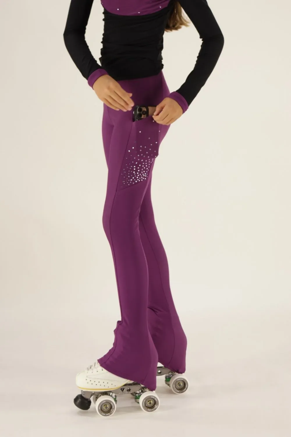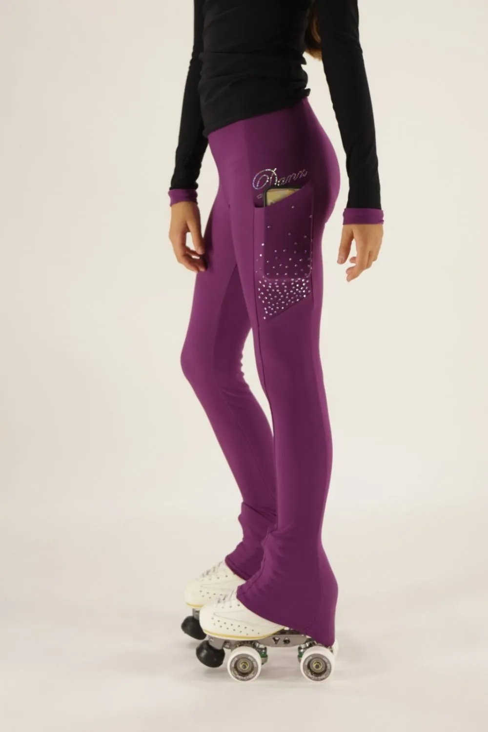 Pantalone a zampa che permette di coprire buona parte del pattino fino al tacco.